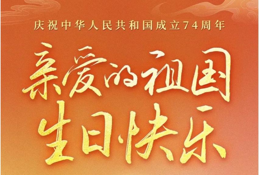 74年風(fēng)雨兼程74載山河巨變一起祝福偉大祖國生日快樂(lè )、繁榮昌盛!今天之中國我為你驕傲目光所至家國共好祝親愛(ài)的祖國生日快樂(lè )!