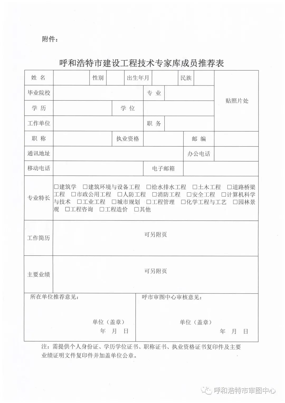 呼和浩特市建設工程技術(shù)專(zhuān)家庫成員推薦表